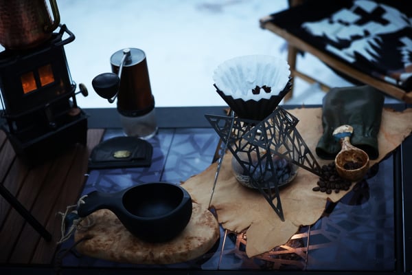 ゴムバンド付きで内容量に合わせ留め方をアレンジ可能。 コーヒーの香りが袋から漂います。